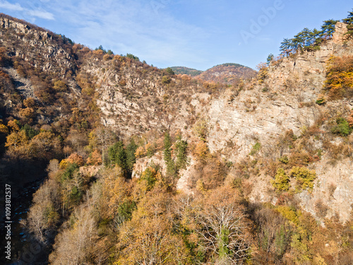 bulgaria, river, season, tour tourism, canyon, mountain, panorama, europa, travel, vacation, autumn, fall, scene, sunny, destination, landscape, background, colourful, day, decoration, environment, forest, green, light, peak, natural, nature, plant, road, scenic, october, sunlight, tree, high-coloured, park, yellow, landmark