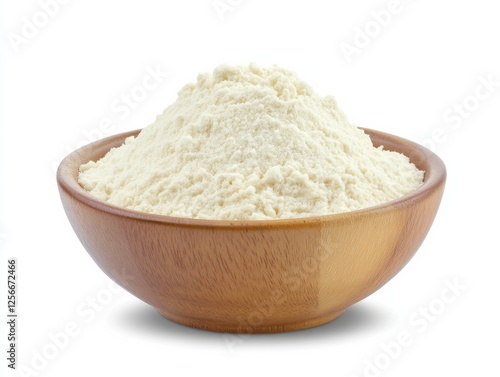 Rice flour in a bowl. Featuring a bowl of rice flour. Highlighting traditional ingredient and culinary preparation. Ideal for food and kitchen visuals.
