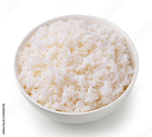 Rice in a bowl on a white background
