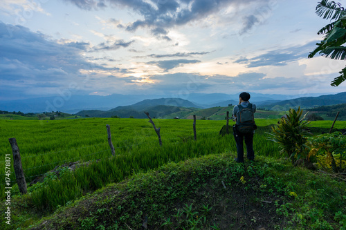 Rice Terraces at sunset time and in rainy season. Best feeling in nature and travel
