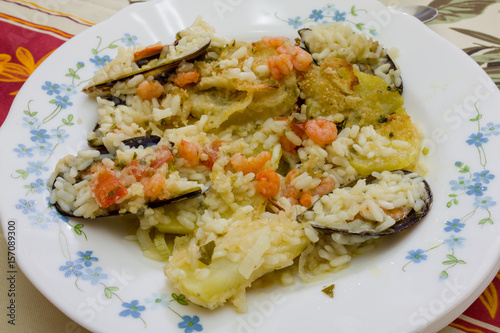 Rice with seafood with mussels
