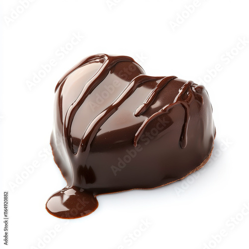 Rich and Decadent Chocolate Heart with Melted Ganache Drizzling Over the Top on a Clean White Background for a Sweet Treat or Dessert Concept