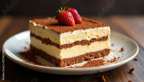 Rich, decadent tiramisu, showcasing texture and layers , isolated, sponge fingers, cafe