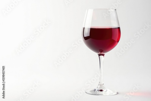 Rich red wine in a crystal glass, clean white backdrop, still life, clean, isolated