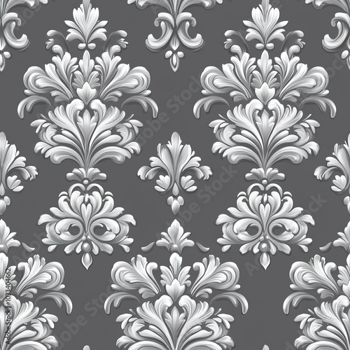 richly, detailed, vector, damask, pattern, elegant, flourishes, arranged, slate, grey, background, sophisticated, look