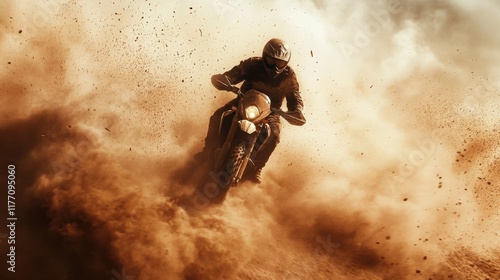 Rider conquers the dust on a thrilling motorcycle adventure in a rugged landscape