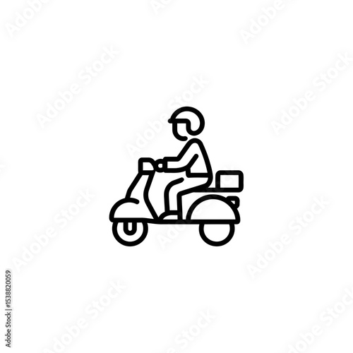 bike, helmet, ride, scooter, vehicle, transport, travel, road, journey, speed, delivery, service, motor, motorcycle, urban, adventure, style, recreation, transportation, icon, outline, line, black, white, graphic