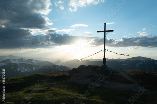 bavaria, winter, sunset, hike, peak, cloud, cross, heaven, religion, mountain, countryside, god, nature, redeemer, cloud, religious, hill, symbol, catholic, blue, sunset, faith, crucifix, church, travel, scenic, view, light, sunrise