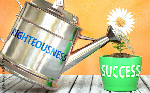 Righteousness helps achieve success - pictured as word Righteousness on a watering can to show that it makes success to grow and it is essential for profit in life, 3d illustration