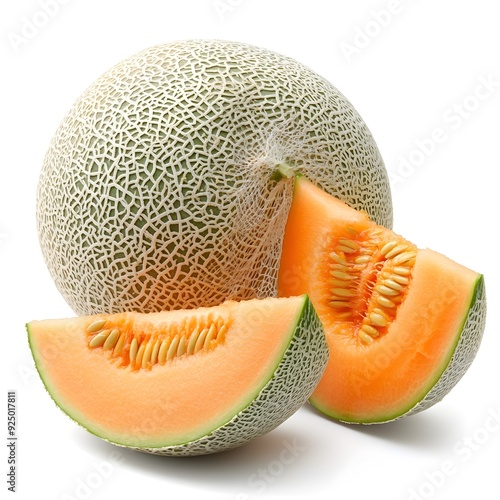 cantaloupe, melon, fruit, healthy, food, ripe, slice, orange, seed, rind, isolated, white, background, fresh, nourishment, organic, natural, vegetable, produce, vitamin, juicy, sweet, honeydew, muskmelon