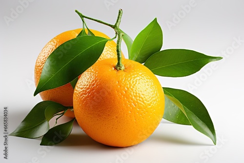 Ripe orange with green leaves on a white background. Isolated