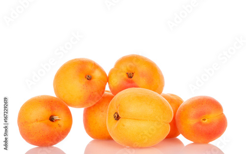Ripe organic apricots isolated on white background, macro.