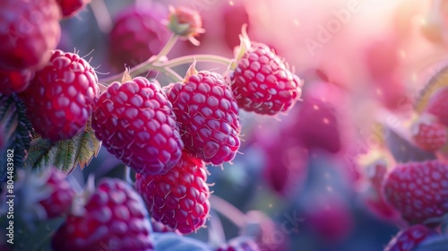 ripe organic raspberries macro on a colorful background capturing the freshness of summer berries