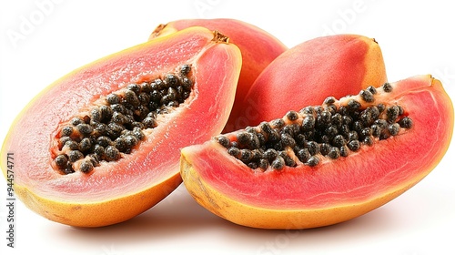 papaya, fruit, slice, ripe, tropical, sweet, juicy, delicious, fresh, organic, healthy, vitamin, mineral, antioxidant, summer, dessert, snack, breakfast, lunch, dinner, seed, black, flesh, red, yellow, white, background, isolated, macro, food, nourishment, dietary, culinary, edible, exotic, caribbean, south, america, asia, natural, bright, vibrant, colourful, texture, skin, core, center, half