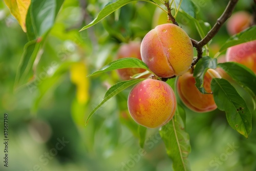 Ripe Peaches Hanging on a Tree Branch
