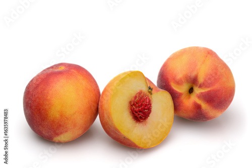peach, group, ripe, red, yellow, half, cut, round, pit, burgundy, rough, hairy, fruit, sweet, isolated, vitamin, food, dessert, healthy, white, background, white background, delicacy, tender, closeup, fresh, vegetarian, eat, harvest, peach, three