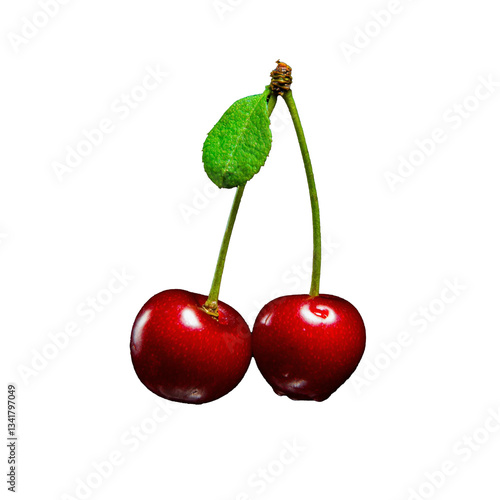 Ripe Red cherry with Leaves with Transparent background | Fresh Fruit Photography