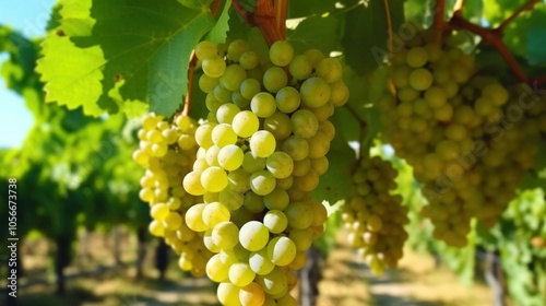 Ripe White Grapes Hanging on Vine