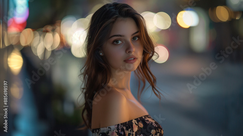 woman, beauty, people, face, fashion, hair, model, person, smile, 1, brunette, smile, city, woman, night, party, happy, pretty, glamour
