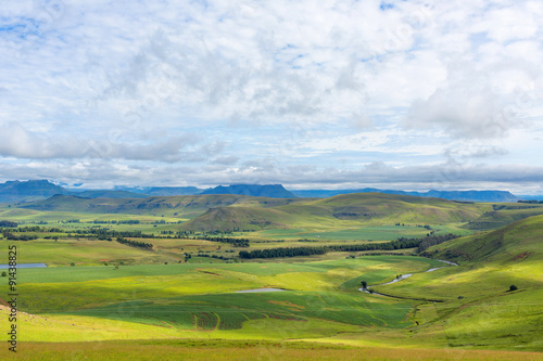 africa, south africa, blue, cloud, colourful, countryside, grass, green, horizon, landscape, mountain, nature, peak, ray, river, rock, sunshine, vale, water