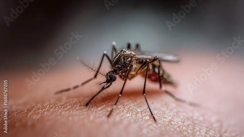 mosquito, closeup, skin, detail, health, risk, awareness, insect, bug, pest, arthropod, creature, winged, bloodsucker, disease, parasite, biting, piercing, proboscis, antennae, leg, wing, body, head, chested, abdomen, human, flesh, texture, surface, brown, black, grey, pattern, sharp, clear, fuzzy, microscopic, feeding, stinging, medicals, danger, biology, nature, wildlife, entomology, dermatology, irritation