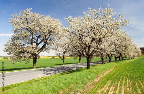 alley, cherry, tree, field, springtime, abloom, agriculture, avenue, beautiful, beauty, bloom, blooming, blossom, blossoming, blue, cart, cherry tree, colours, countryside, environment, flora, floral, flourescent, flourishing, flower, flowery, garden, green, highway, landscape, may, expressway, natural, nature, plant, road, rural, season, sky, spring, springy, time, tree, vegetation, vista, way, white