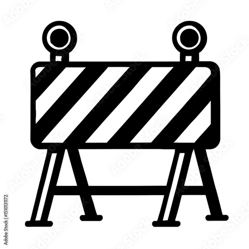 construction, barrier, traffic, warning, safety, caution, work in progress, detour, roadblock, graphic, icon, vector, illustration, black-and-white, outline, simple, minimalist, symbol, pictogram, transportation, infrastructure, maintenance, highway, street, urban, rural, repair, temporary, portable, light, beacon, danger, secure, signs, clean, modern, isolated, cut-out, render, accident, hazard, striped