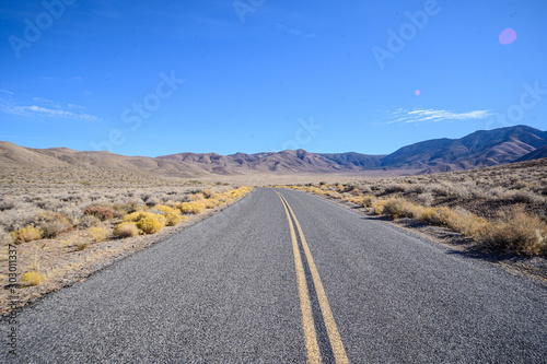 road, desert, highway, landscape, travel, sky, asphalt, us, mountain, nature, blue, horizon, vale, scenic, journey, california, trip, line, mountain, street, route, nevada, park, land, death