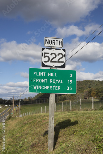 Road sign in Virginia in the countryside with blue sky and clouds