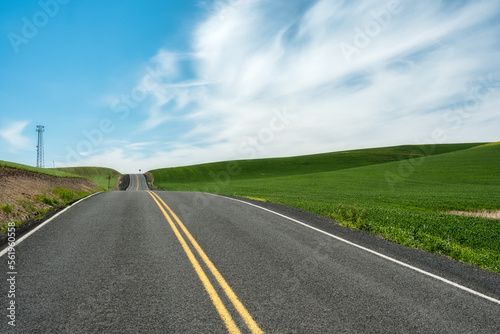 road, travel, open, highway, journey, trip, nature, summer, asphalt, landscape, drive, sky, transportation, empty, line, freedom, sun, field, sunset, way, beautiful, rural, scene, speed, view, grass, blue, route, outdoors, motion, transport, perspective, curve, green, destination, background, country, street, land, adventure, horizon, mountain, cloud, sunlight, day, nobody, vacation, scenic