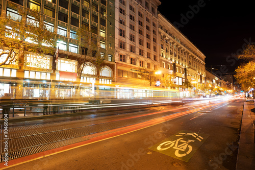 road with tramway in san francisco at night