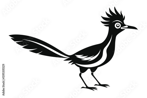 Roadrunner Bird Isolated, Monochrome, Cartoon Animal