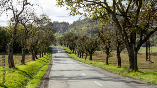 road, tree, tree, nature, landscape, forest, autumn, green, path, country, sky, countryside, way, park, avenue, travel, street, rural, leaf, wood, fall, grass, summer, lane, spring, dotted line