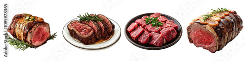 roast, beef, isolated, white, background, tender, juicy, meat, savoury, delicious, cooked, meal, comfort, dish, hearty, rich, alimentary, traditional, flavorful, hot, set, cut-out, mix, collection