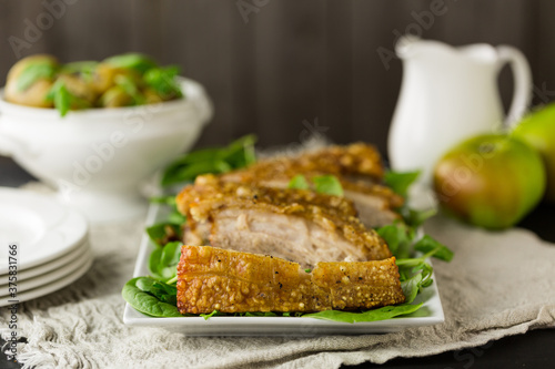 pork meat, crunchy, roasted, meat, meal, joint, food, fat, dinner, crisp, crackling, crackle, cooked