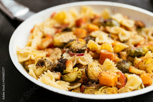 apple, apple, brussels sprouts, delicious, food, freshness, fruit, frying pan, healthy, homemade, homemade, indoor, meal, nobody, onion, pasta, ready-to-eat, roasted, squash, vegan, vegetable, vegetarian