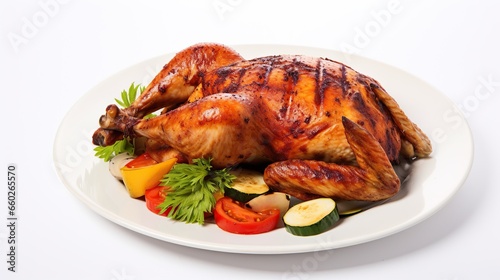 roasted chicken, grilled chicken, whole fried chicken. white background .Generative AI