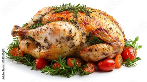 chicken, roast, roasted, poultry, bird, dinner, meal, food, cookery, cooking, delicious, tasty, savoury, herb, herb, thyme, rosemary, tomatoes, tomatoes, cherry, garnish, platter, dish, white, background, isolated, healthy, protein, meat, holiday, feast, celebration, thanksgiving, christmas, family, gathering, appetising, juicy, crispy, gold, brown, succulent, flavorful, aroma, smell