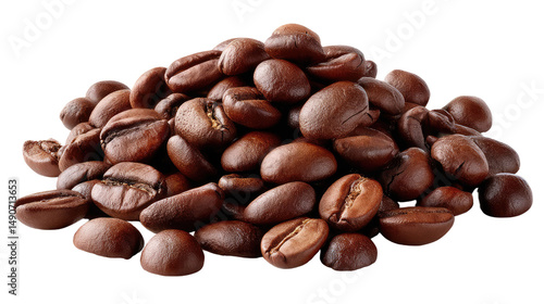 Roasted Coffee Beans: A close-up shot reveals a pile of roasted coffee beans, showcasing their rich, dark color and textured surface, evoking the aroma of a freshly brewed beverage.