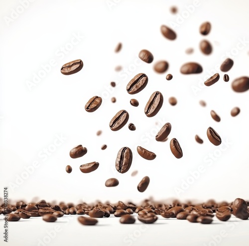 Roasted coffee beans falling, white background, studio shot, food advertising (3)