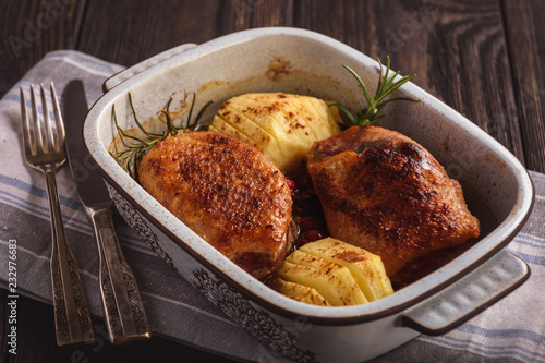 breast, cooked, cookery, delicious, dinner, dish, duck, fillet, food, fresh, garnish, epicure, healthy, lunch, meal, meat, nourishment, orange, plate, potato, poultry, red, roast, roasted, sauce, slice, sliced, tasty, yellow