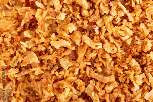 Roasted onions background. Crispy fried onions. Top view.