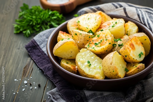wedge, herb, food, bowl, savoury, side dish, roasted, dinner, crispy, baked, gold, seasoning, salt, parsley, homemade, meal, comfort food, potato, rustic, fresh, garlic, healthy, flavorful, snack, vegetarian, delicious, salt and pepper, wholesome, simple