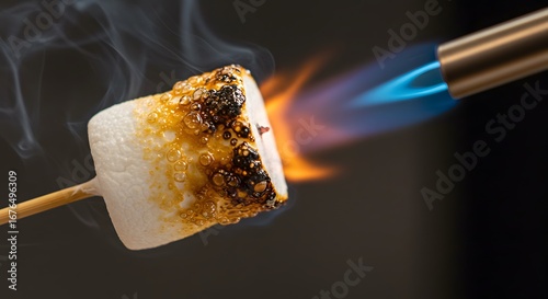 food preparation, blowtorch, closeup, searing, crème brûlée, golden brown, marshmallow, roasting, toasting, dessert, sweet, treat, food, flames, fire, heat, cooking, sugar, epicure, brown