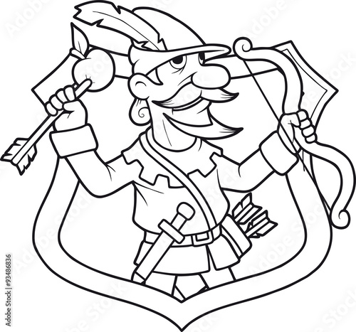 robin hood, silhouette, apple, arm, hero, bow, arrow, hat, humor, funny, cartoon, character, drawing, illustration, picture, costume, arrow, logotype, icon, emblem, signs