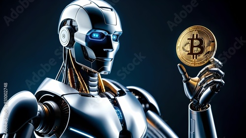 Robot and Bitcoin coin