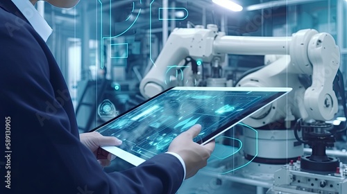 robot arm manufacturing in a production line, Generative AI