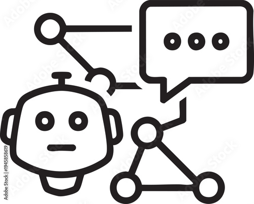 artificial, intelligence, robot, head, automation, technology, digital, future, machine, learning, icon, graphic, design, outline, vector, communication, speech, bubble, dialogue, connection, network, node, interface, system, computer, programming, algorithm, datum, processing, innovation, concept, modern, simple, minimalist, monochrome