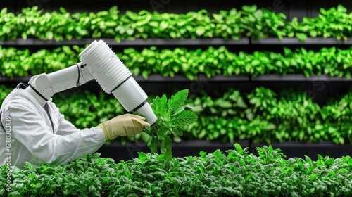robot, farm, vertical, plant, agriculture, technology, automated, farming, indoor, growing, futuristic, spinach, hydroponics, cultivation, harvest, science, food, future, innovation, research, development, modern, efficient, sustainable, environmentally friendly, green, healthy, produce, crop, automation, system, industrial, smart, digital, precision, genetic, engineering, botany, horticulture, leaf, growth, nature, environment, progress