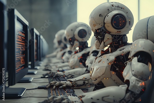 intelligence, artificial, technology, robot, concept, futuristic, productive, employment, conceptual, management, automated, innovation, droid, team, android, job, robotic, laptop, professional, automation, working, computer, corporate, cyborg, work, future, office, machine, business, ai